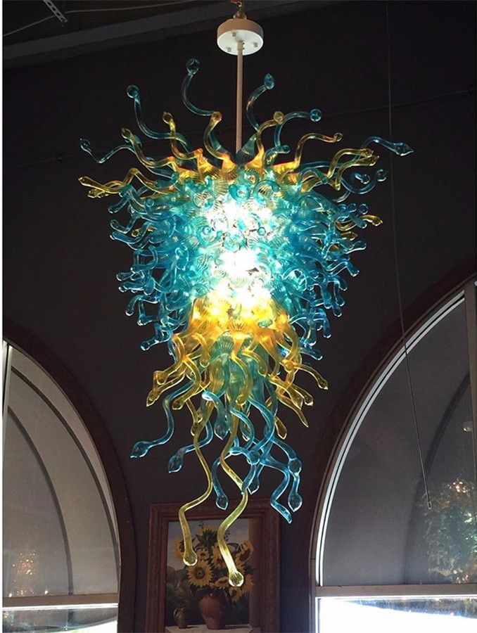 French Style Handmade Blown Glass Chandelier Blue And Amber Color Art Chandelier Lighting For Home Hotel Lobby Decor Coloured Glass Pendant Lights