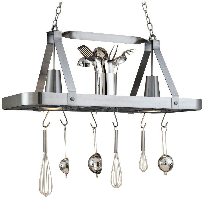 With a functional pot rack ceiling light brighten up your kitchen island while adding a useful space to store pots pans and utensils for easy access while you work. Browse our collections of hanging lights and chandeliers online. Find all the details here.