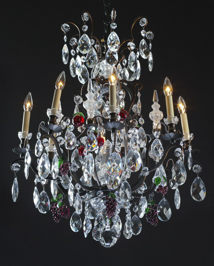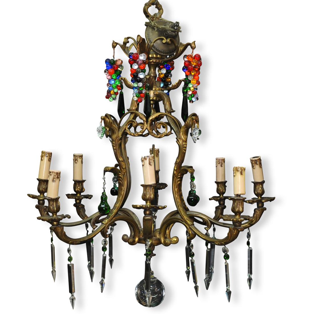Italian Bronze And Fruit Crystal Eight Light Chandelier