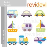 Transportation Clip Art Pastel Vehicle Cars Boat Choo Choo Train Plane