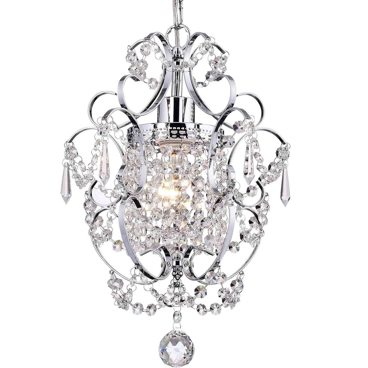 Crystal Mini Chandelier Lighting 1 Light Chrome Chandeliers Iron Ceiling Light Fixture 17011