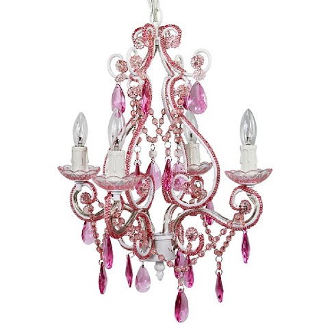 Tadpoles 3 Bulb Beaded Mini Chandelier Pink Sapphire