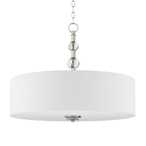 Kira Home Nolan 18 Drum Pendant Chandelier White Fabric Shade Round Glass Diffuser Adjustable Height Brushed Nickel