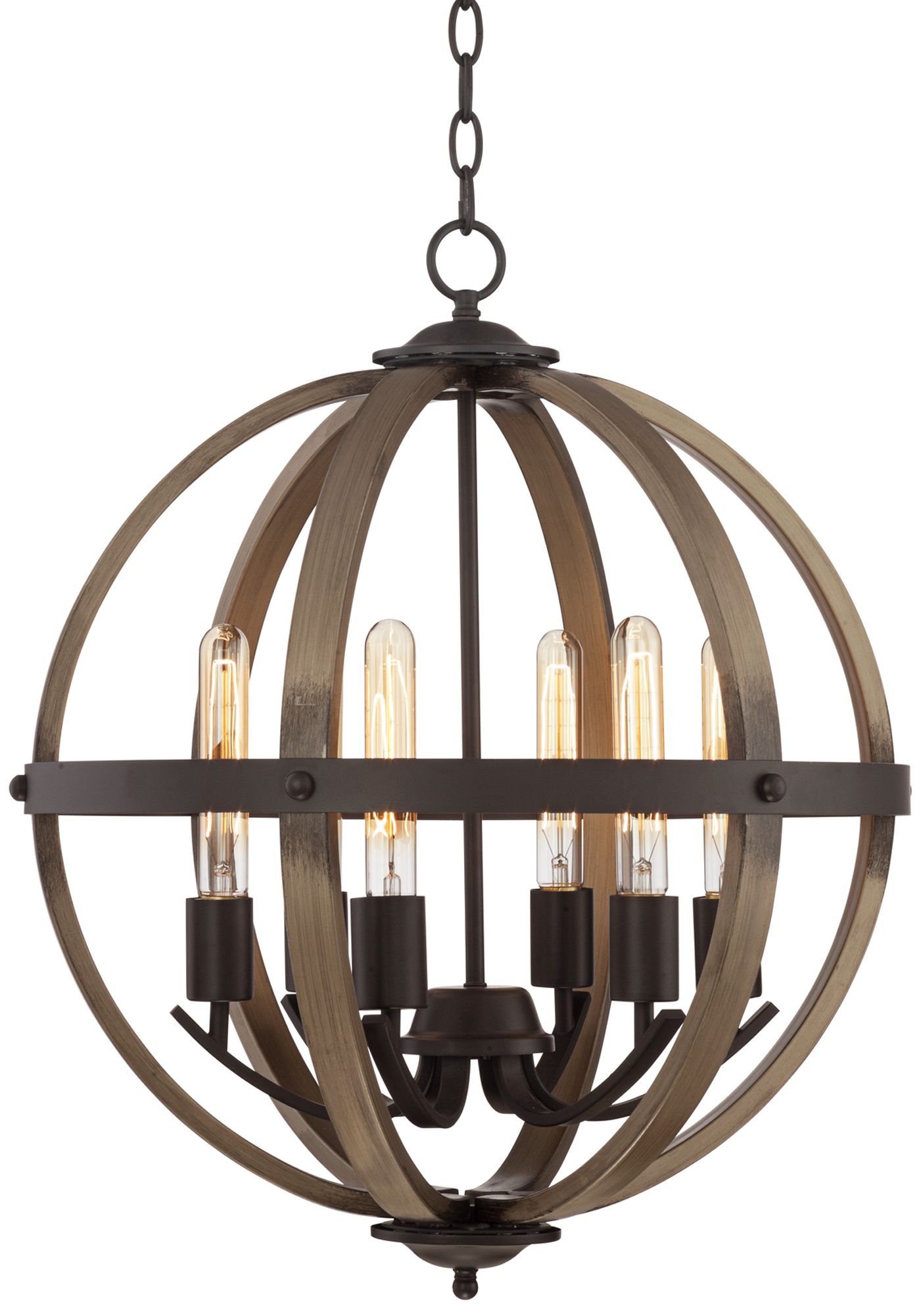 Distressed Wood Orb Chandelier