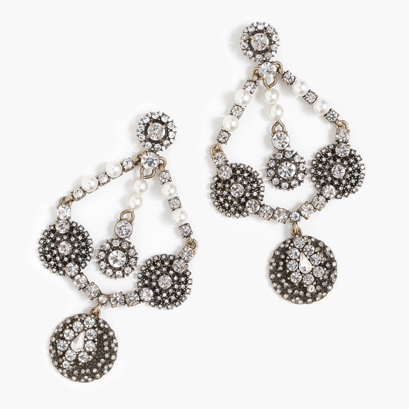 J Crew Crystal And Pearl Chandelier Statement Earrings Nwt 65 A9158 Ebay